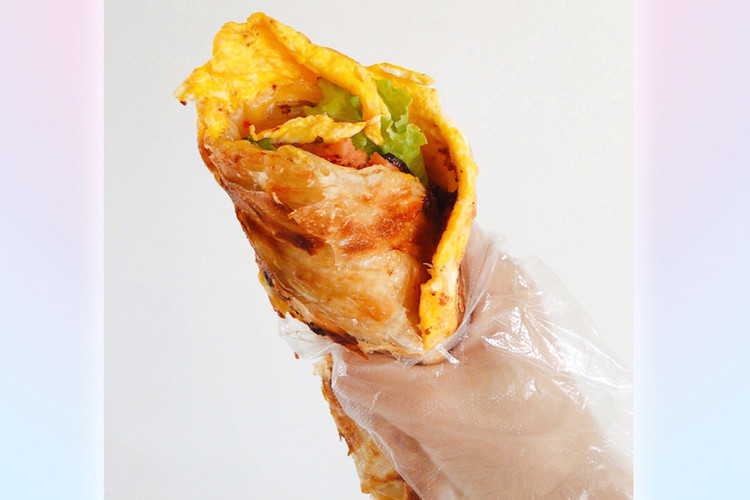 A delightful combination of sweet and savory! A crispy hand pancake is wrapped around sweet crab stick and savory, fluffy pork floss. The contrast between crispy texture and rich filling makes this a popular and unique snack.