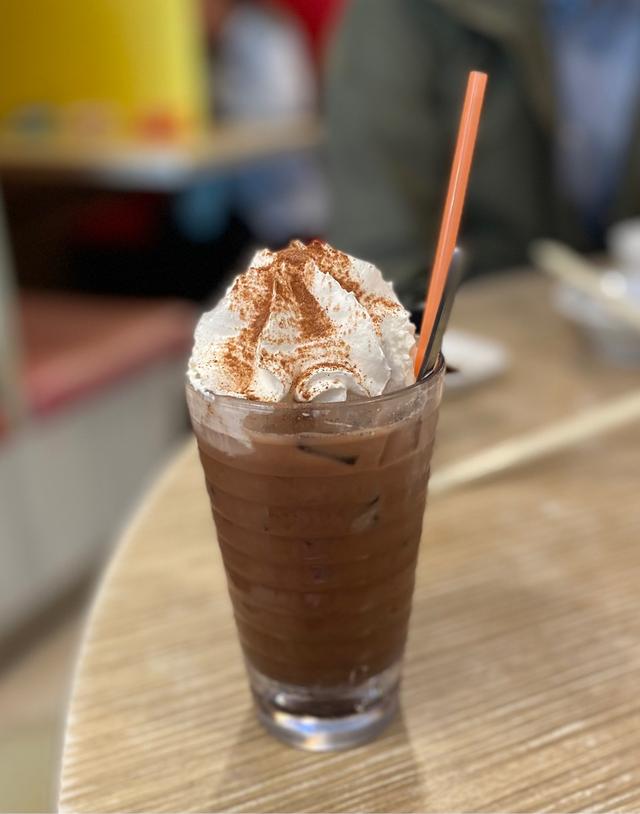 香濃幼滑嘅朱古力特飲!濃郁嘅熱朱古力(或凍朱古力),上面唧滿香滑忌廉,再撒上少許朱古力粉。味道香甜濃醇,口感順滑,係朱古力控嘅最愛,非常滿足!