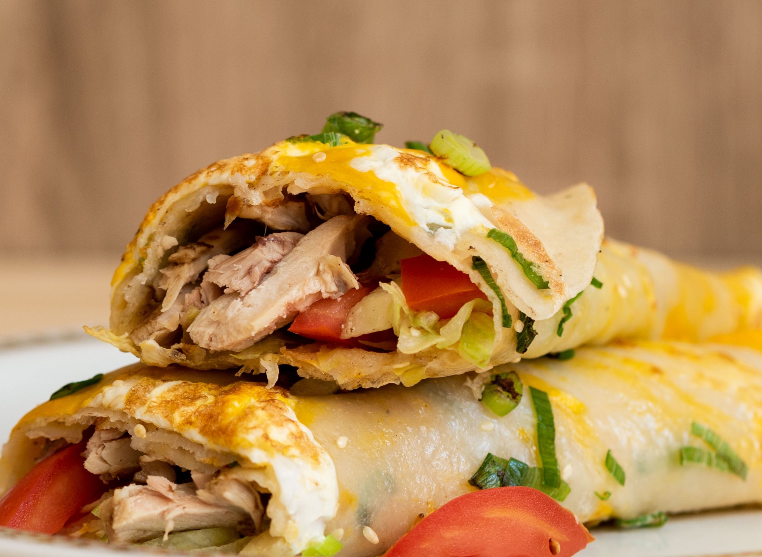 酥脆手抓餅捲入嫩滑多汁的手撕雞,口感對比強烈,簡單直接的飽肚地道風味。