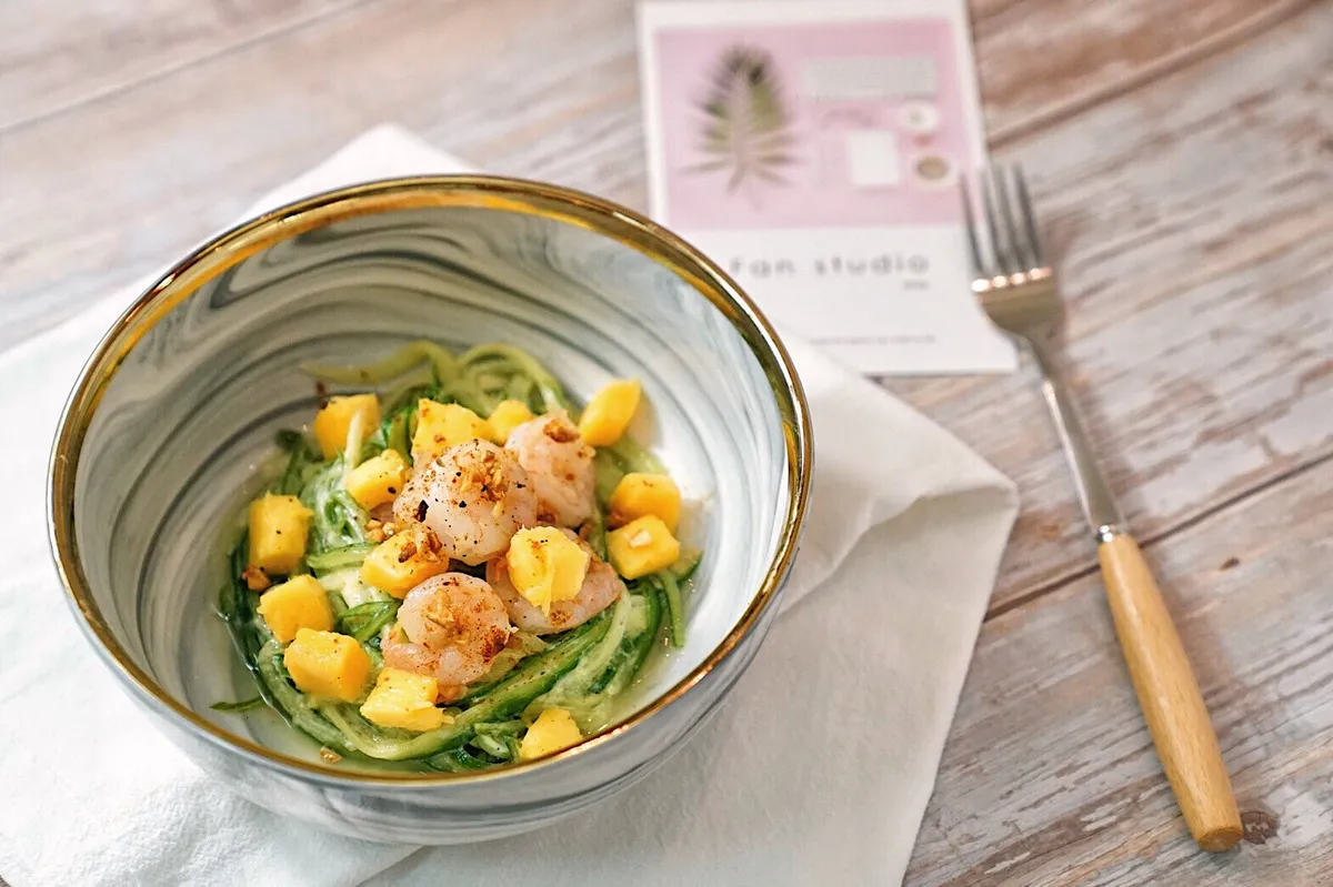 新鮮惹味嘅海鮮炒麵!爽口彈牙嘅大蝦仁,配搭清新青瓜絲同 Q 彈炒麵,大火炒出陣陣海鮮鮮味。味道清爽得嚟又夠鮮甜,口感爽脆,係健康又美味嘅炒麵選擇。
